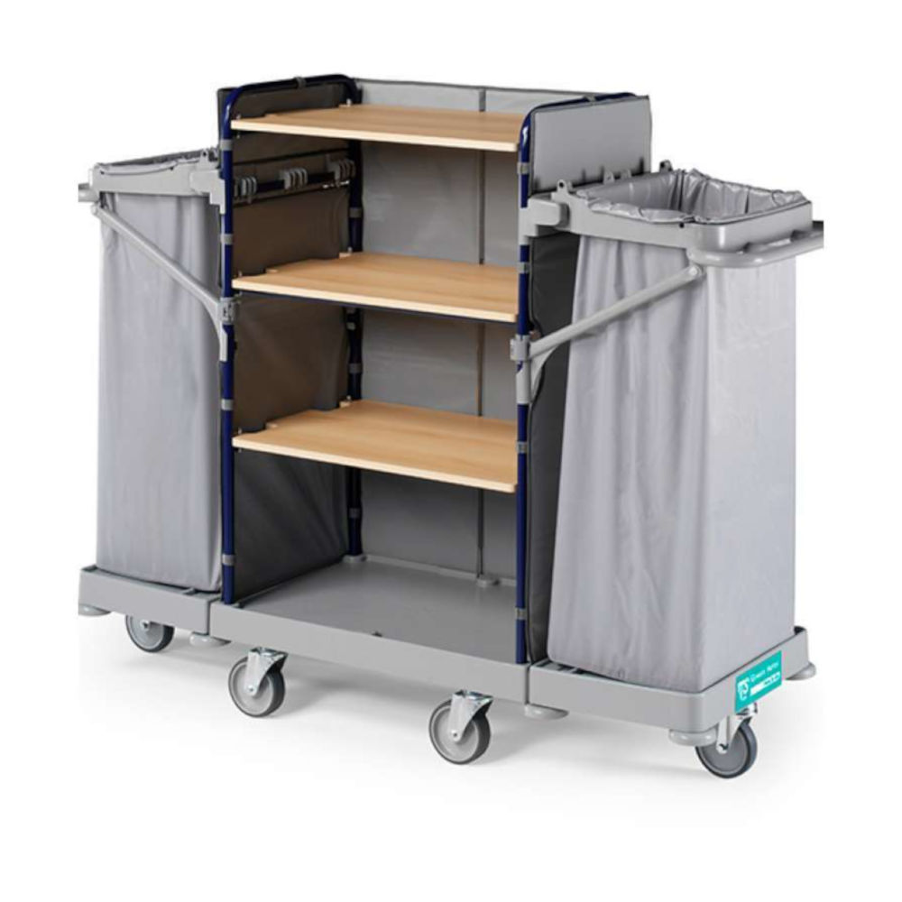 – Equipado con un portasaco plastificado, capacidad 120L, para la recogida de ropa sucia.